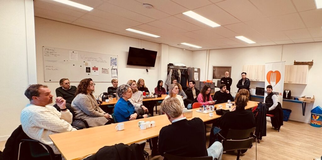 Dinsdag 18 november brachten ongeveer 20 oud-collega’s van Inge Hoornweg, de voorganger van onze huidige secretaris, een bezoek aan Eindhoven. Inge werkte 36 jaar voor het hoofdkantoor van ABN AMRO in Amsterdam en had nog een afscheidscadeautje van haar collega’s tegoed. Haar ‘cadeautje’ werd omgezet in een hartverwarmende donatie voor de voedselbank. De ontvangst was aan de Kanaaldijk-Noord, waar het gezelschap onder leiding van Edgar Linders, een rondgang kreeg door het magazijn en de Winkel. Daarna ging het naar het 18 Septemberplein waar op dat moment de drukbezochte weekmarkt was. De tips die Edgar vooraf had meegegeven, hoe het winkelend publiek aan te spreken voor een donatie, werkten als een tierelier. Aan het einde van de ochtend was er € 1.571 opgehaald. Ondanks de kou en de regen die ochtend, bleef iedereen vasthoudend en enthousiast. Wat was Inge trots en onder de indruk dat haar oud-collega’s het slechte weer trotseerden en zo’n mooi bedrag bij elkaar brachten. Hiermee kunnen we weer veel mensen blij maken! Heel veel dank aan iedereen die aan deze ludieke actie heeft meegewerkt. En vooral een groot dankjewel aan Inge die haar afscheidscadeau op deze mooie manier inhoud heeft gegeven.